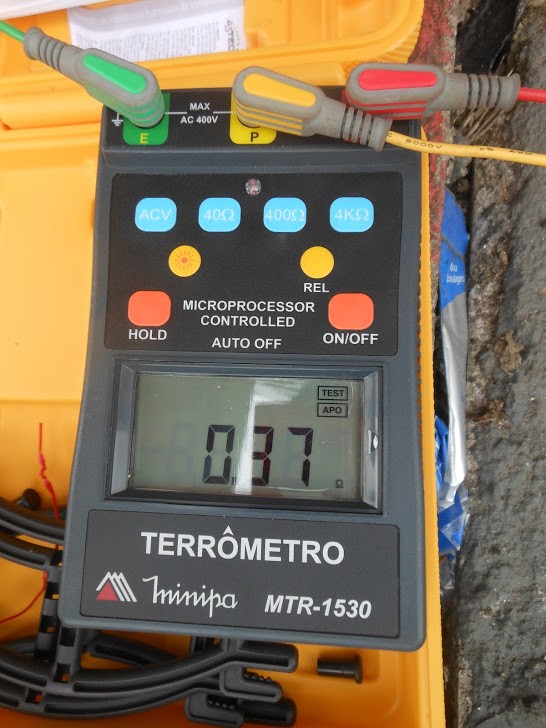 Foi executada a medição da resistência da armadura do SPDA estrutural e a medição da resistência da malha de aterramento conforme NBR 15749:2009. Para tanto, utilizamos um microhomimetro e um terrômetro para checar as condições das estruturas e malhas de aterramento.